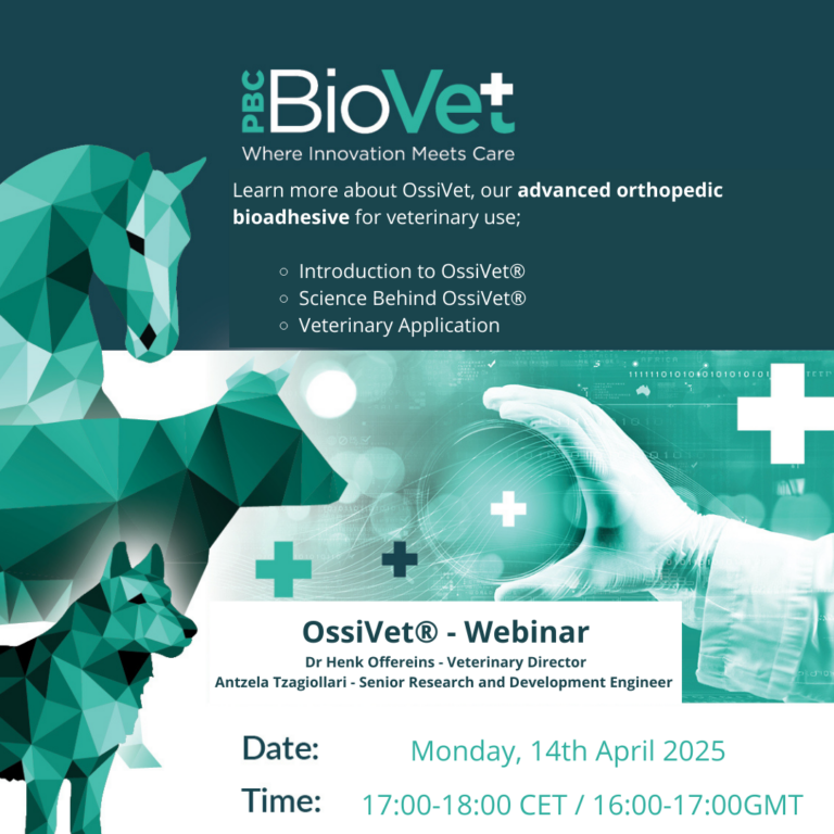 📢 Join Us for the OssiVet® Webinar – April 14, 2025! 🦴💻 We’re excited to invite veterinary professionals to our upcoming OssiVet® Educational Webinar on Monday, April 14th, 2025. Discover how OssiVet®, our advanced orthopedic bone bioadhesive, is transforming fracture management and joint stabilization in veterinary surgery. From science to real clinical cases, we’ll cover the benefits and techniques that help improve patient outcomes. ✅ Date: Monday, April 14, 2025 ✅ Time: 16:00-17:00 GMT / 17:00-18:00 CET ✅ Format: Online – FREE Registration Topics Include: 🔹 Science behind OssiVet® 🔹 Application techniques 🔹 Clinical case studies 🔹 Q&A with our experts 📩 Register now by messaging us or emailing info@pbcbiovet.com Don’t miss this opportunity to enhance your orthopedic practice! #OssiVet #VeterinaryOrthopedics #VetSurgery #Webinar #VeterinaryMedicine #Innovation #FractureRepair #PBCBioVet