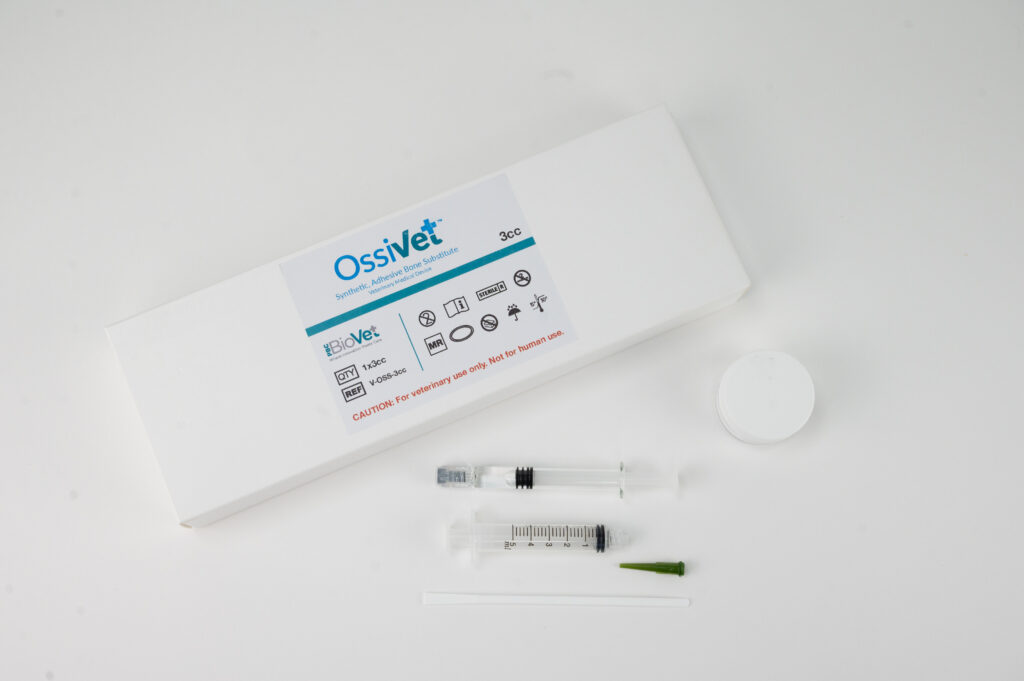 OssiVet™ is an orthopaedic device designed for veterinary applications, in large and small animals. This biomaterial supports void filling and provisional fixation of fractures or defect to enhance structural stability and promote functional mobilisation in animals.