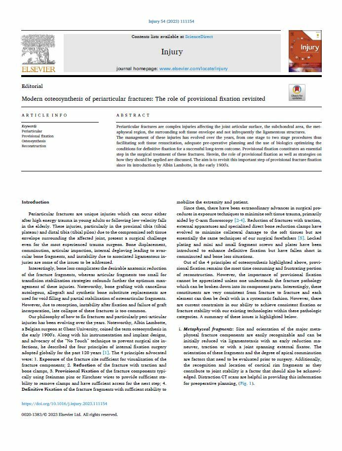 Part One of our ‘Strengthening the Bond’ symposium series at the Orthopaedic Trauma Association meeting in Tampa, focused on the unanswered challenges of osteosynthesis, as well as a first look at research on a promising new bio-adhesive. This surgeon panel, consisting of Professor Peter Giannoudis, Dr Tracy Watson, Dr Thomas A Russell, Dr Hassan Mir and Dr Alicja Bojan, have now subsequently published an editorial summarising this discussion. Editorial| Volume 54, Issue 12, 111154, December 2023. Modern osteosynthesis of periarticular fractures: The role of provisional fixation revisited. Available to view here: https://www.injuryjournal.com/article/S0020-1383(23)00871-9/abstract #acceleratingmedicalinnovation #Periarticular #Provisional fixation #Osteosynthesis