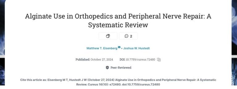 We are excited to announce the release of new publication: ‘Alginate Use in Orthopedics and Peripheral Nerve Repair: A Systematic Review’; which is now live on the Cureus website. The aim of the paper is to examine alginate’s use in orthopaedic indications, as well as look at future applications of alginate for peripheral nerve repair. This publication was written by Dr Joshua Hustedt who based out of Banner Health, in Phoenix AZ. Dr. Joshua Hustedt, MD/MHS is a double board-certified, fellowship trained, hand, upper extremity, and peripheral nerve surgeon. Dr Hustedt has worked as part of the ReFeel development team with our partner company and legal manufacturer Mochida Pharmaceutical Ltd. Full publication can be accessed below – congratulations to Dr Hustedt on its release! https://www.cureus.com/articles/302391-alginate-use-in-orthopedics-and-peripheral-nerve-repair-a-systematic-review #ReFeelnerverepairsolution #peripheralnerverepair #nerverepair #alginate #orthopaedics #acceleratingmedicalinnovation