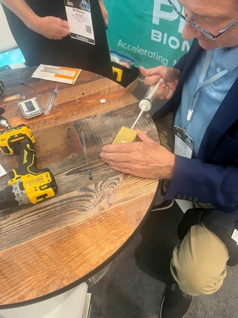 Thank you to our panel of surgeon experts for another great ‘Strengthening the Bond’ symposium at the Orthopaedic Trauma Association conference last week. They also supported us with product demonstrations at our stand for any attendees interested in learning more about one of most exciting technologies – OsStic. Pictured is Dr Tracey Watson using OsStic with a sawbone modelled designed by our Chief Medical Officer Dr Thomas Russell. We look forward to sharing further developments at next years event. #provisionalfixation #OsStictechnology #biomaterials #OTA202 3#pbcbiomed